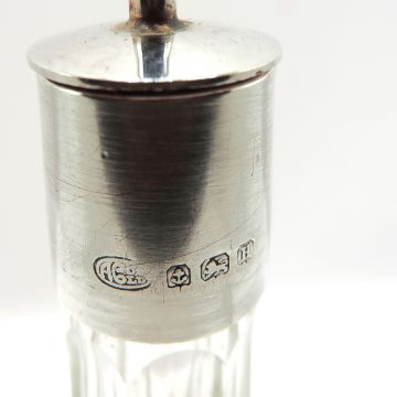 Title: Antique Sterling Silver Cut Glass Vinegar Bottle c.1932