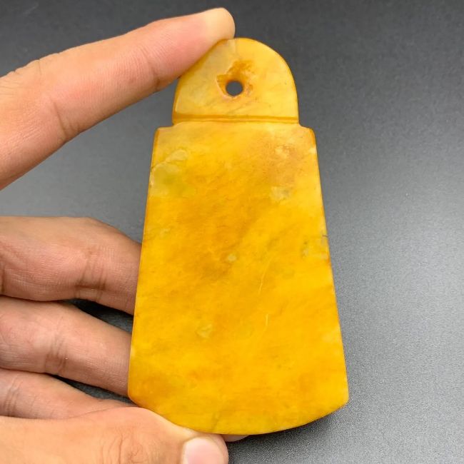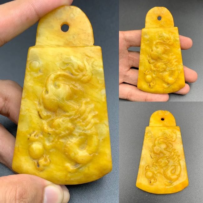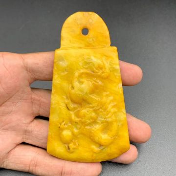 Title: Antique Tibetan Chinese Very Rare Hand Carved Dragon Yellow Jade Pendant, PT-877