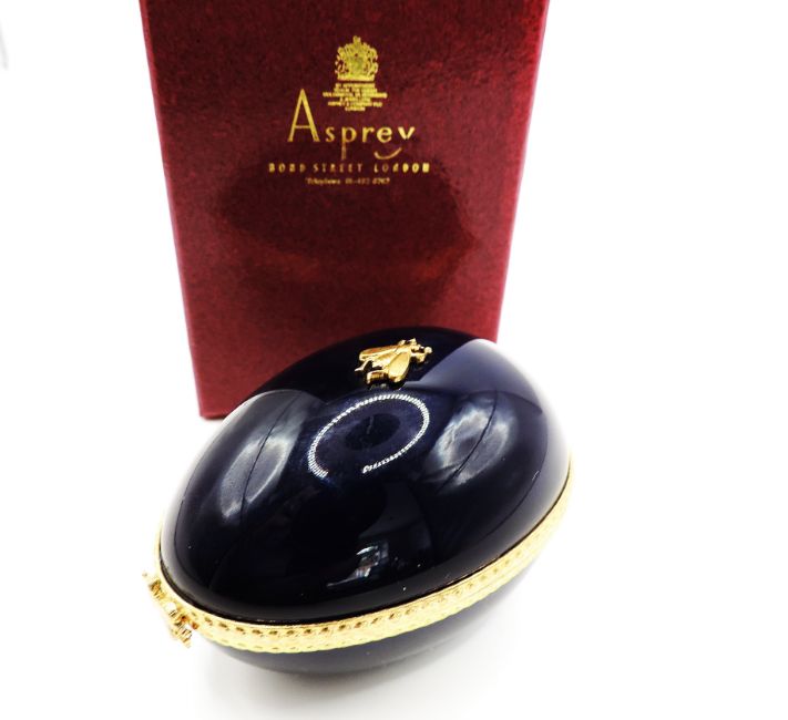 The egg measures 6x2cm has makers marks on the base and is in the original Asprey gift box.