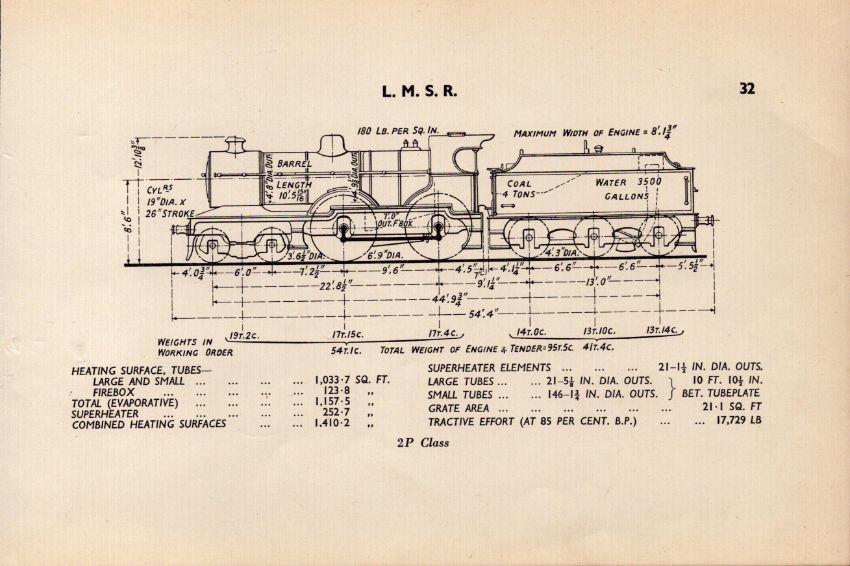 L.M.S.R. 2P Class  Locomotive Detailed Diagram 85-Year-Old Print.