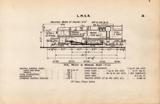 L.M.S.R. 3P Class (Taper Boiler) Locomotive Detailed Diagram 85-Year-Old Print.