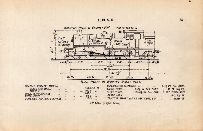 Title: L.M.S.R. 3P Class (Taper Boiler) Locomotive Detailed Diagram 85-Year-Old Print.