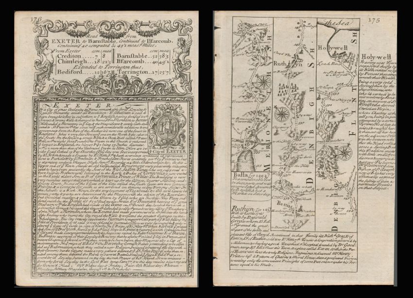 Title: Exeter to Barnstable to Ilfracombe Bowen 290 Yrs Old Detailed Road Map
