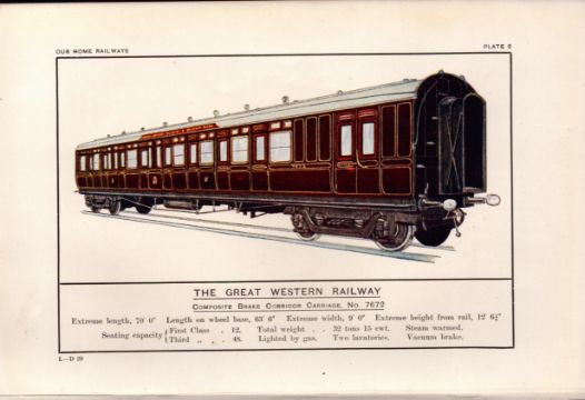 Great Western Railway Carriage No 7672 Train Antique Book Plate.