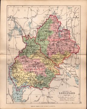 Title: County of Longford Ireland Antique Detailed Coloured Victorian Map.