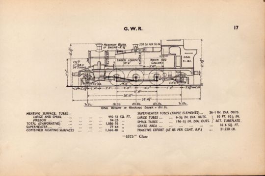 G.W.R  “4575” Class Locomotive Detailed Diagram 85-Year-Old Print.