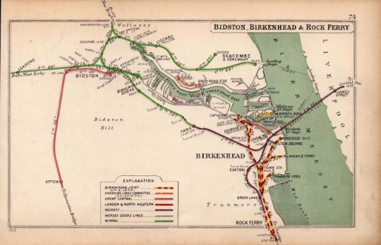 Bidston Birkenhead Rock Ferry River Mersey Antique Railway Diagram-74.