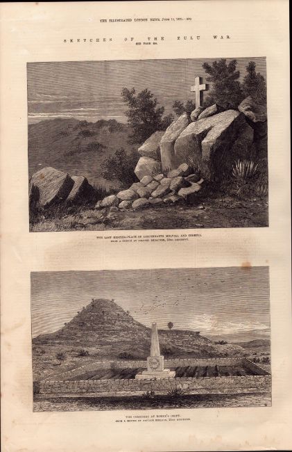 Title: Zulu Wars the Cemetery At Rourke's Drift 1879 Antique Woodcut Print.