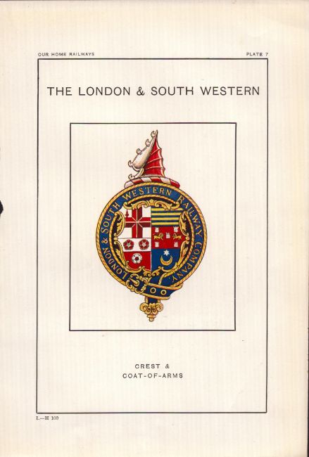 London & South Western Crest & Coat of Arms Antique Book Plate.
