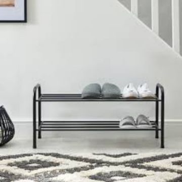 On this 2-tier shoe rack, you can neatly store your sneakers, flats, and more.