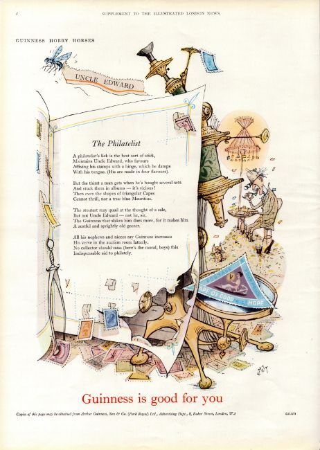 Original 64-Year-Old 1959 Guinness Print the Philatelist– GE 3273   #-9.
