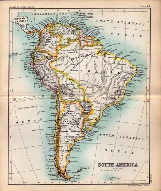 Title: South America Double Sided Victorian Antique 1898 Map.
