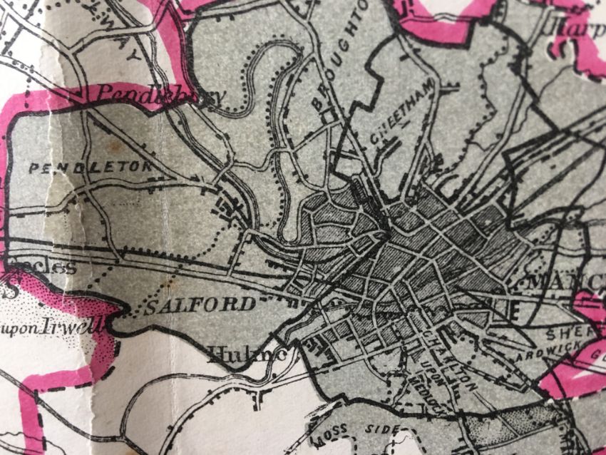 Antique 139 Years-Old Scarce Map South East Lancashire 1885 Boundary Changes.