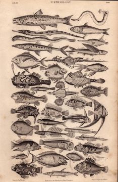 Ichthyology 34 Illustrations Species Marine Fishes Antique 154 Yrs-Old Steel Engraving -5.