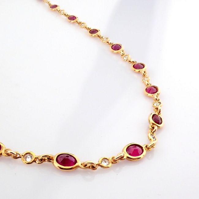 18K rose gold necklace detailed with rubies and brilliant diamonds
