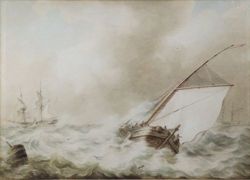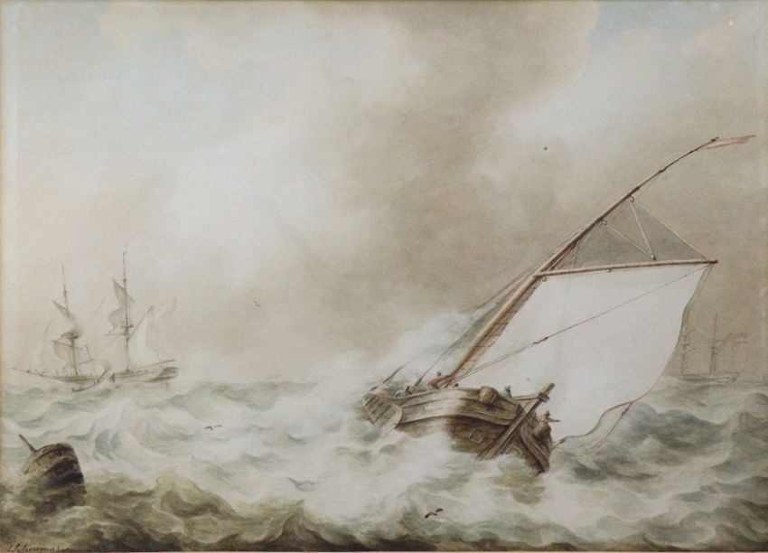 Title: Martinus Schouman (Dutch, 1770-1848) Watercolour Seascape