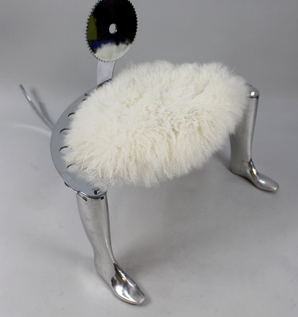 The frame chromed, with the seat upholstered in a rich long haired Mongolian wool
