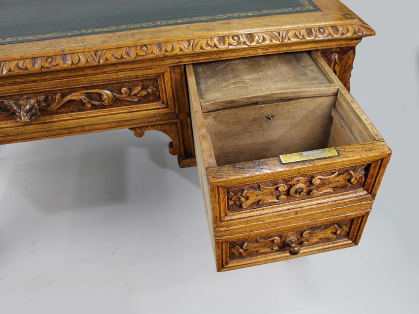 We are pleased to offer a handsome early nineteenth century carved oak Green Man desk.