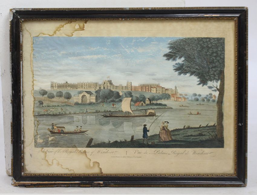 Set behind glass in Hogarth style ebonized & gilt frame.