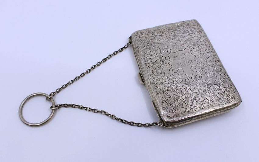 Decorative engraved sterling silver card case/aide memoire made by Joseph Gloster