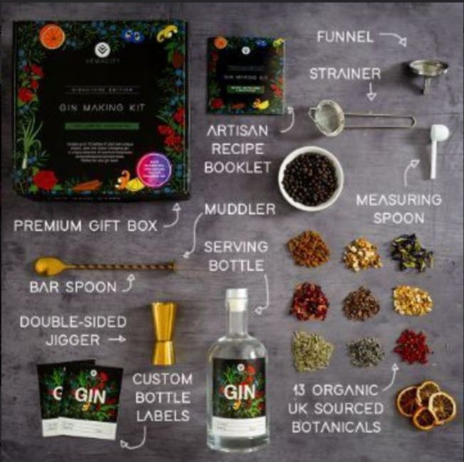 - Premium Tools, Beautiful Ingredients & Artisan Recipes For Beautiful Tasting Gin - Craft gin in 36 hours? Yes Please! To Start: Artisan Recipe Booklet, Measuring Spoon, Funnel, Sieve, 13 x Botanicals. To Serve: Cocktail Spoon with Muddler, Double-Sided Jigger, Custom Bottle Labels, Large Serving Bottle and 2 x Premium Garnishes.