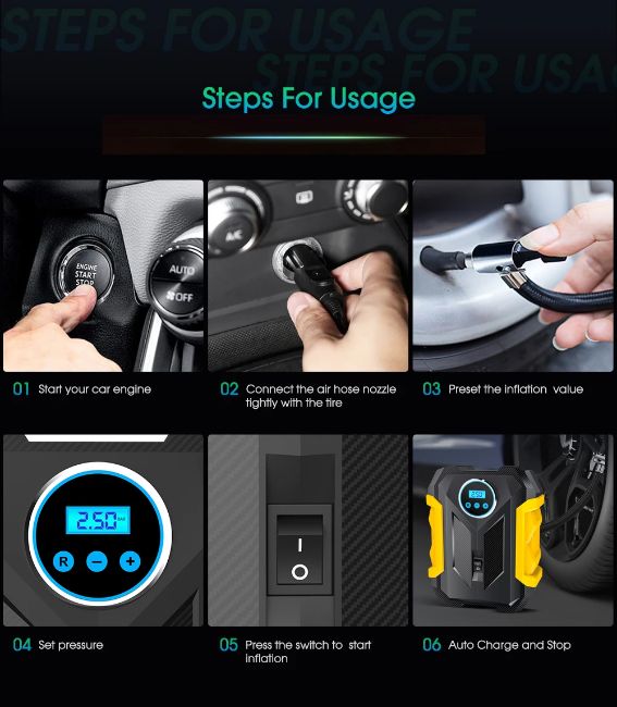 Title: Portable Automobile Air Compressor Digital Tire Inflation Pump LED Lamp Tire Compression Pump