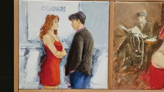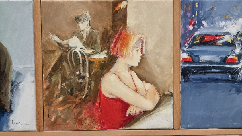 Giuliano Trombini was born in Tresigallo on 9 January 1953. He exhibits for the first time in 1970. His works are chosen to illustrate books and novels. After various researches between surrealism and symbolism, in the mid-80s the cycle "the Carnival of Venice" begins, which he presents in numerous personal exhibitions in various Italian Art Galleries. In the 90s his research continued with the cycle "Homage to Modigliani" and "Figures of waiting" which he created in the last period. Giuliano Trombini presented numerous personal exhibitions, in addition to participation in the National Fairs of: Bologna, Padua, Milan, Vicenza, Palermo, Reggio Emilia, and International Fairs of: Nice, Melbourne, Ghent, Budapest, Geneva. His works are found in public and private collections. Numerous art catalogues, art magazines and newspapers have written about his painting.