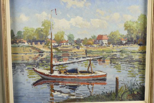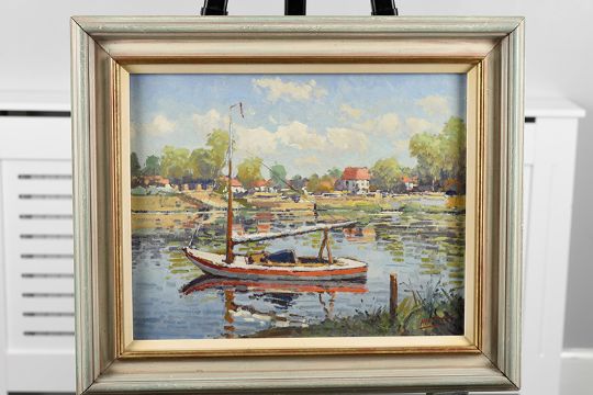 5193 - Original oil on canvas by the artist Heytman depicting a colourful water scene in the impressionist style.