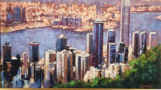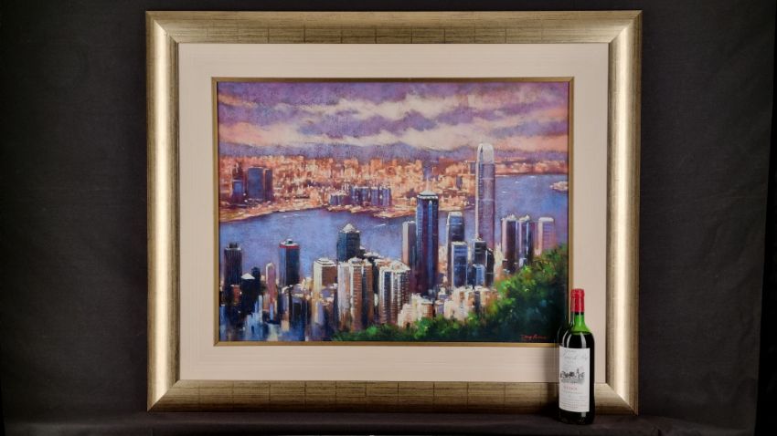 This original depicts the view of Hong Kong.