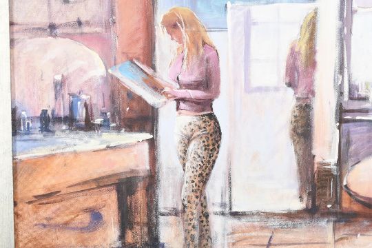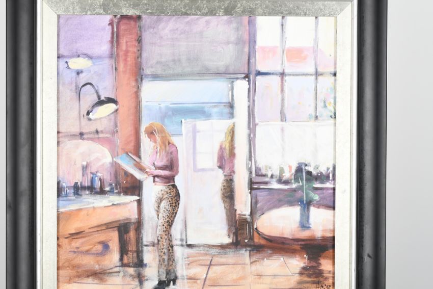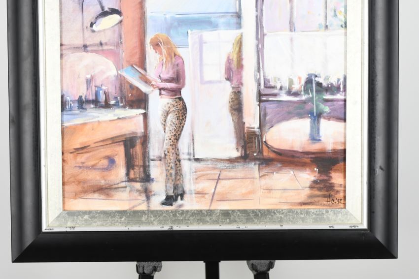 5291 - Original oil on canvas by Henderson Cisz of a Lady in an interior scene.