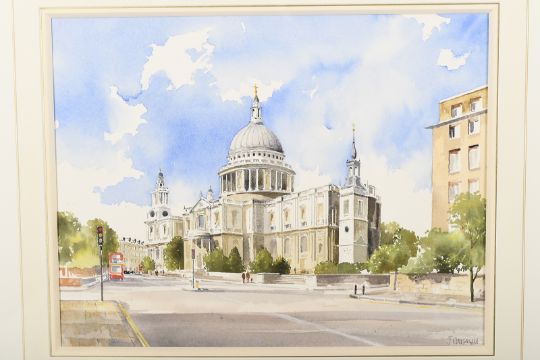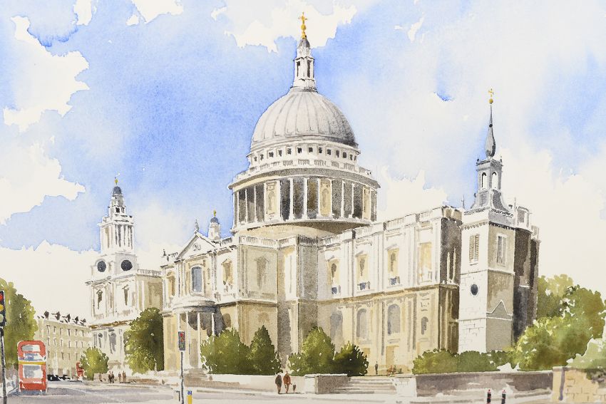 John Chisnall was born in Carshalton, Surrey in 1943 where he spent the first twenty years of his life. He had a very successful career in the public sector, managing the design and construction of a wide range of buildings and civil engineering structures for the government estate. The professional experience gained in this field has given him extensive knowledge of many of the subjects he now explores in his paintings. He developed his interest in painting and drawing in parallel with his primary career until, gradually, these activities gained more importance and in 1992 he left public service in order to spend more time painting. John Chisnall has painted in various media throughout his life and now works mainly in watercolour, finding this medium well suited to catching both the atmosphere and the detail of a place. Largely self taught, although he did spend three years at Sutton School of Art studying life drawing, his paintings are direct celebrations of visual pleasures and ignore the darker sides of modern life. Exhibiting extensively in galleries throughout the UK, he has had six one-man shows in the last 15 years and has illustrated several books on local villages and parishes in Surrey. His pictures are held in collections as far afield as the USA and Australia. He is also a regular cartoonist with several magazines.