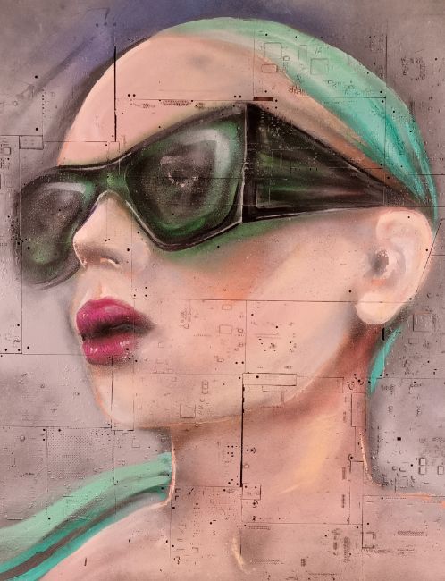 9593 - Circuit board girl by contemporary artsit Chas Williams.