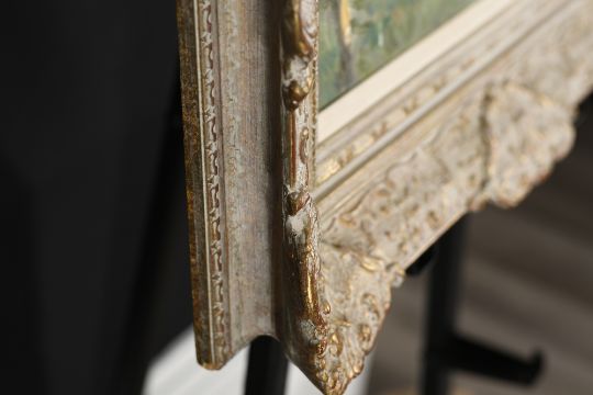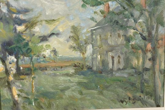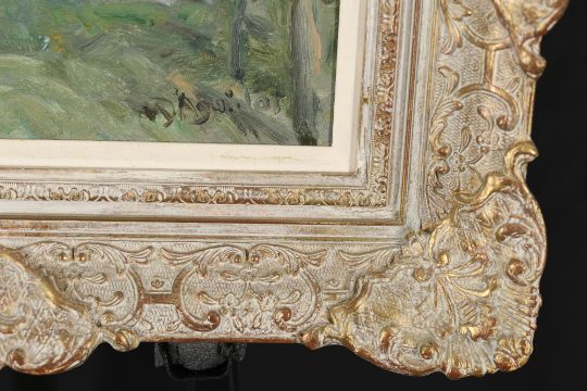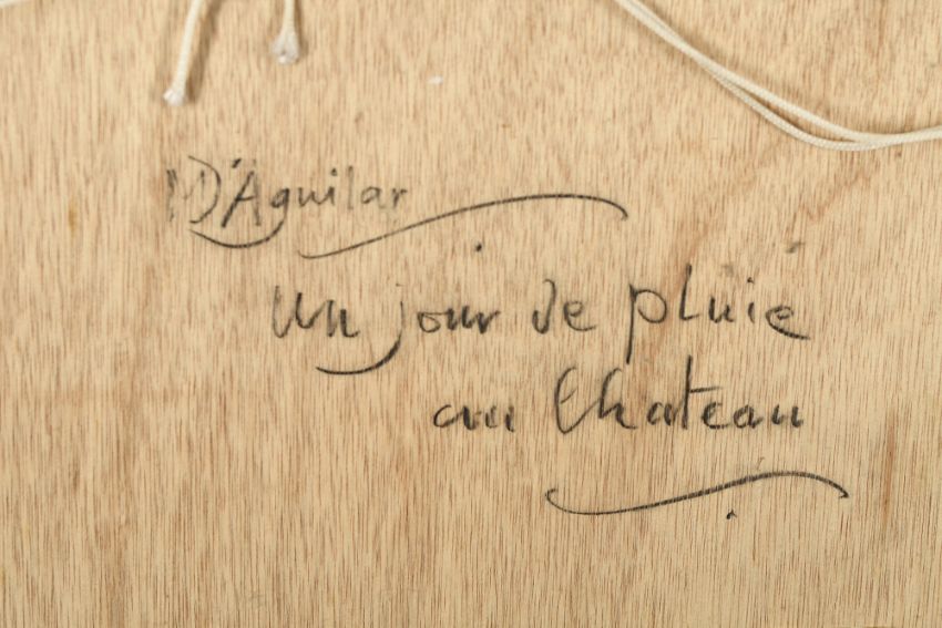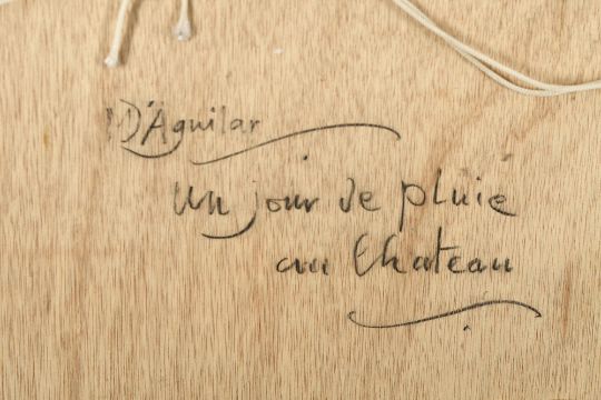 7641 - Distinguished London artist Michael D'Aguilar (1924-2011) original oil painting on canvas panel, titled "Un jour le pluie au Chateau".