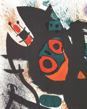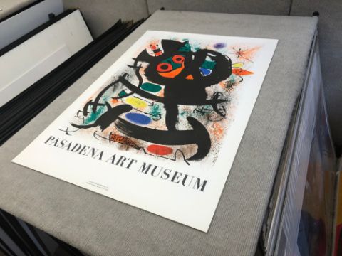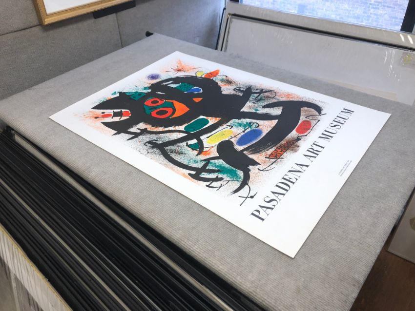 This original lithographic poster was produced for the retrospective exhibition of Joan Miro's graphic work held at the Pasadena Art Museum in 1969.