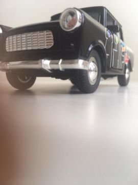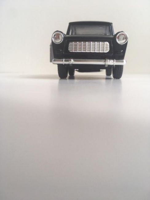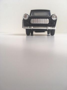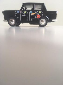 This work is a 1:39 scale model of Noir's full-size, hand-painted Trabant car in Black.