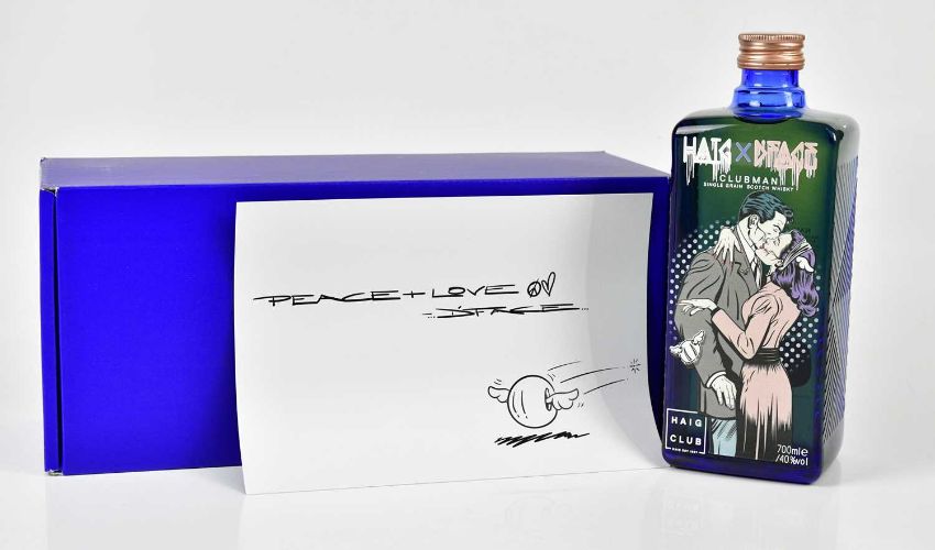 Description: Limited Edition single bottle of Haig Club whisky collaboration with D*face in the brand’s iconic blue bottle Printed direct to glass this bottle design was a limited edition of 1000 and was launched on Haig Club’s new website. Printed direct to glass this bottle design was a limited edition of 1000 and was launched on Haig Club’s new website 2020.
