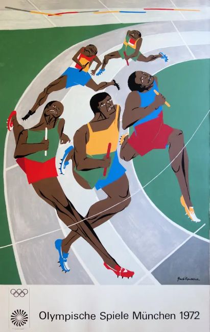 Jacob Lawrence (b1917-2000) Munich Olympic Games, Relay Race, Lithograph Poster, 1972