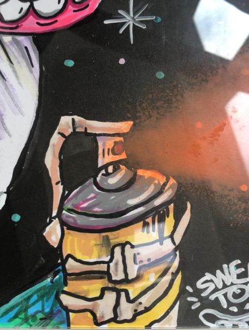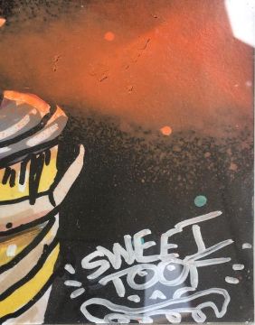 Previously working as a member of the Burning Candy Crew with crew-mates Tek 33, Cyclops and Rowdy. Sweet Toof began graffitiing on the streets of East London in the 1980’s.
