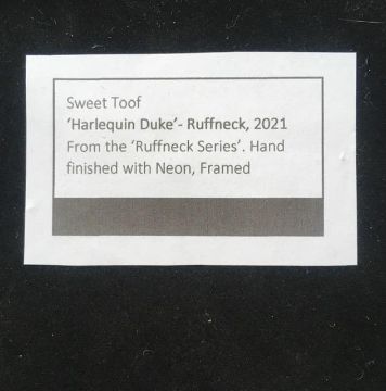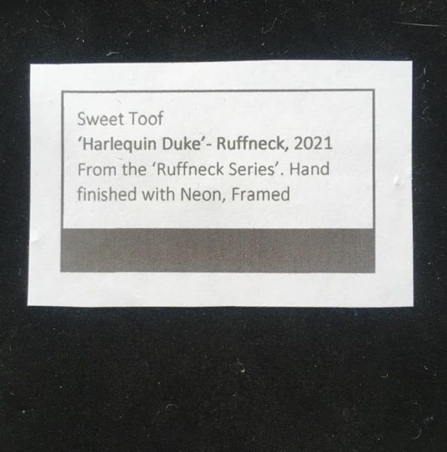 Sweet Toof (b 1976) ‘Harlequin Duke’- Ruffneck, Hand signed, Graffiti art Original 1of 1, Neon, framed, 2021