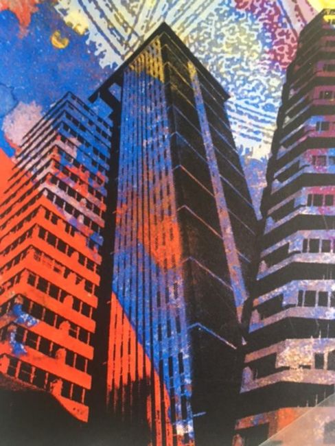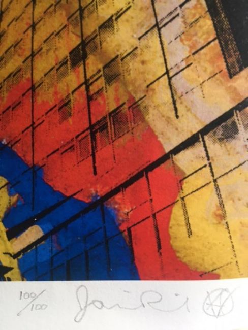 Typical Trademark Reid, use of Cut outs of newspaper and journal lettering style to titles with anarchy signs across the Picture. Signed to the borders.