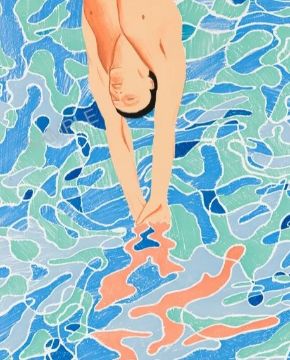 This lithograph captures Hockney's obsession with swimming pool art with vivid stylised realism in bright and vibrant, colours. Capturing a moment in time, both culturally, stylistically and athletically.