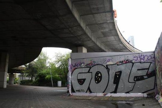 Early in his artistic career PURE EVIL graffitied his craft under the Westway flyover in London in early 21st century .