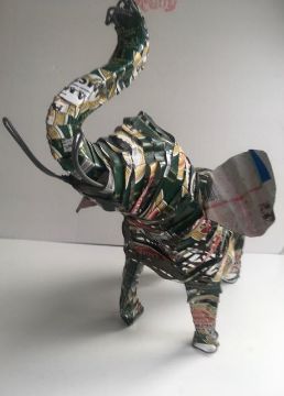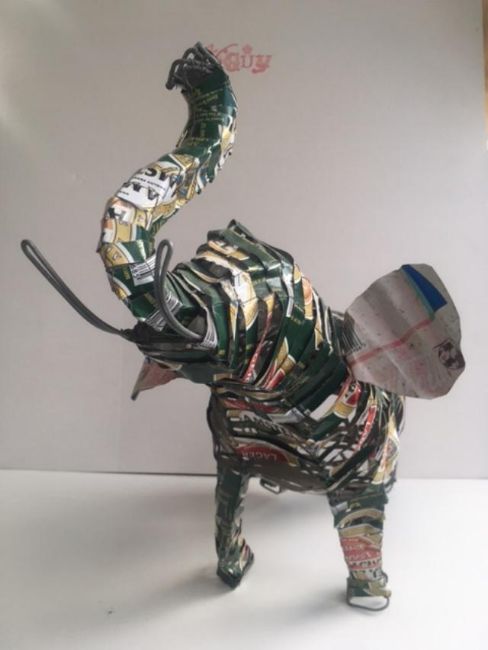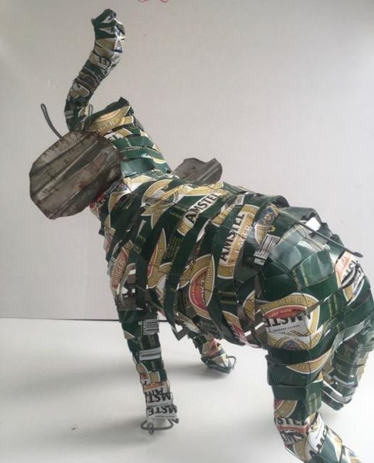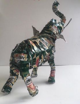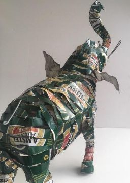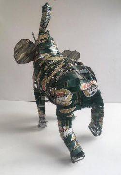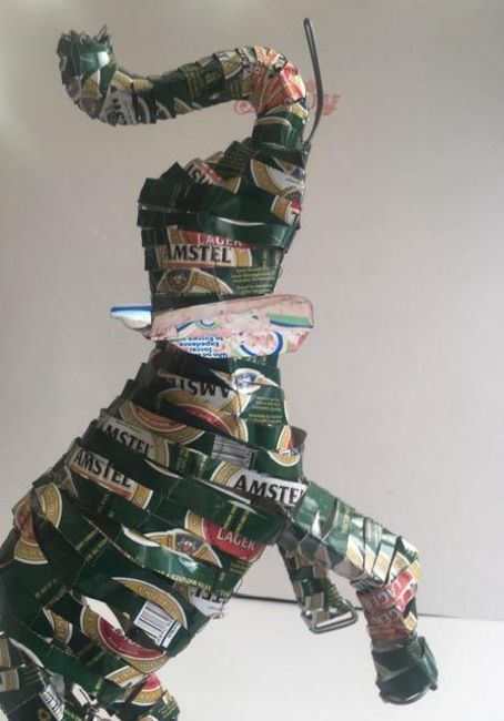 Body has been crafted by re purposing empty aluminium beer cans and upcycled into sculpture. The time involved in the design, construction, timeless