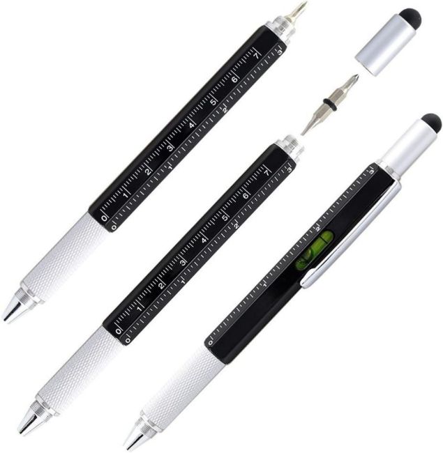 6 in 1 Tool Pen with Ruler, Level, Touch Screen Stylus, Phillips and Phillips Screwdriver.