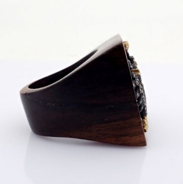 - An exquisite eagle ebony ring detailed with brilliant diamonds and gold on silver.- Hand Made Ring- One Of Kind--------------------------------------------------