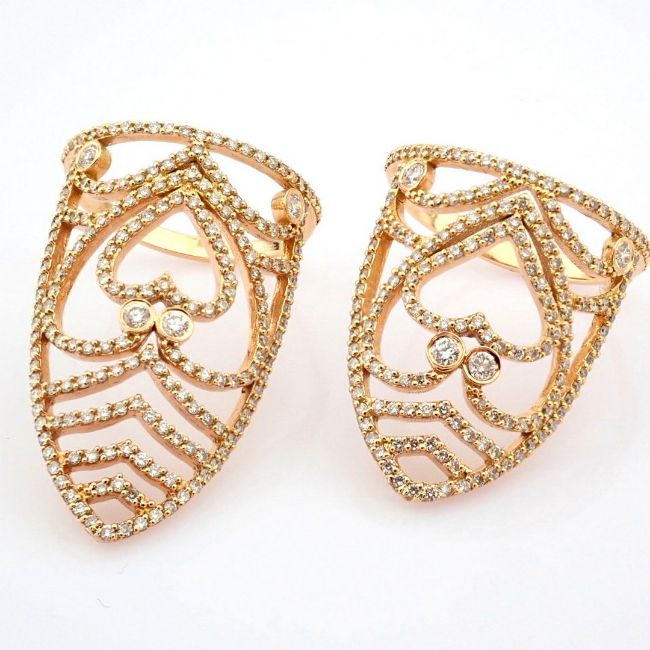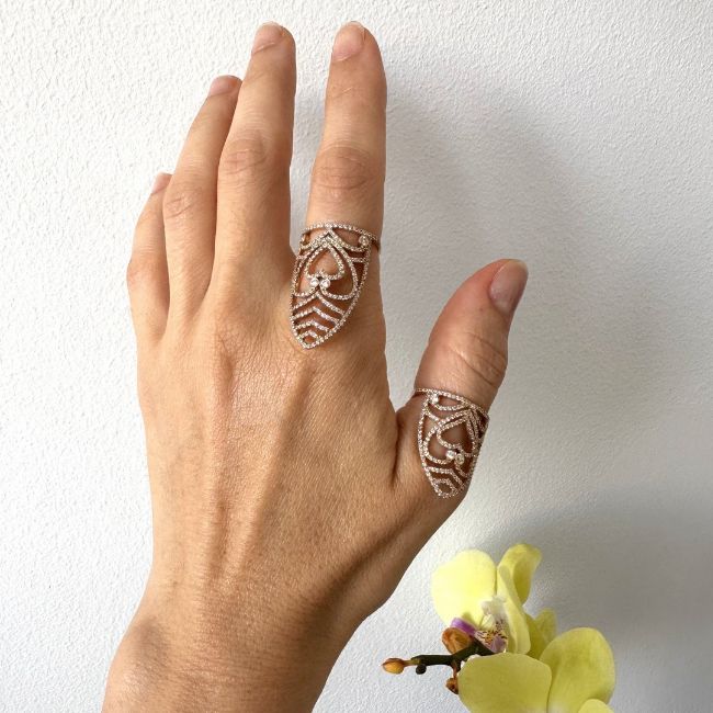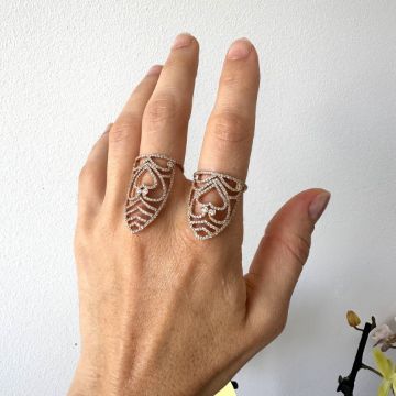 - 18K rose gold double ring detailed with brilliant diamonds--------------------------------------------------
