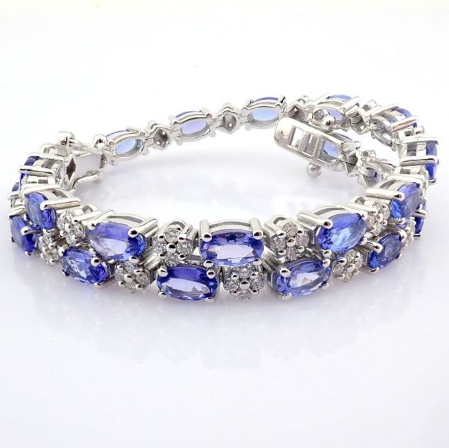 - 14K white gold bracelet detailed with brilliant diamonds and tanzanite--------------------------------------------------