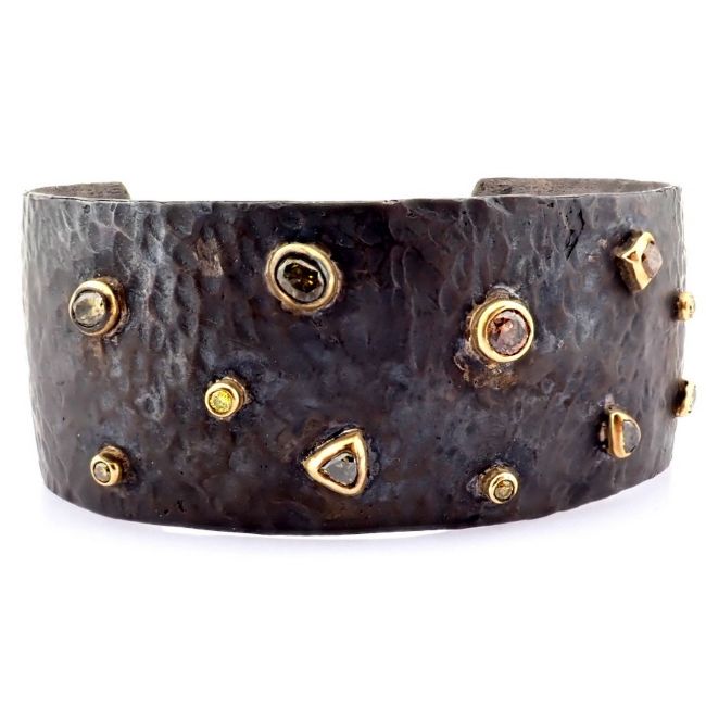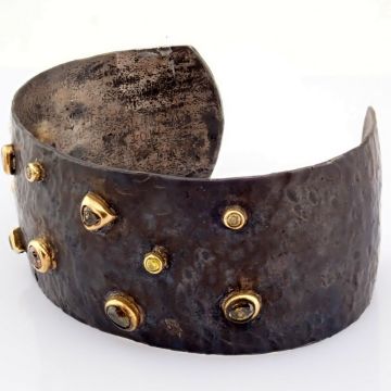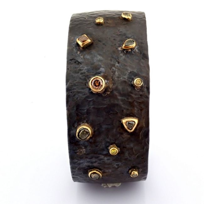 - An exquisite bangle detailed with brilliant diamonds and gold on silver- Hand Made Bracelet- One Of Kind--------------------------------------------------