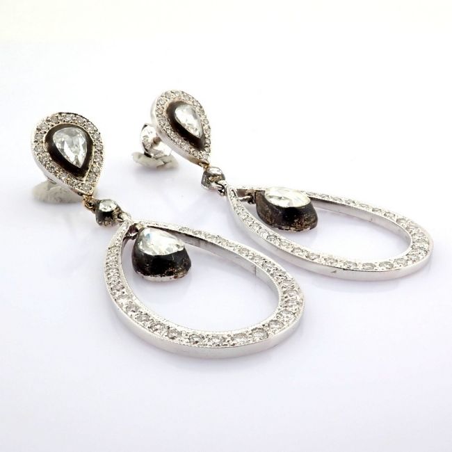 18K white gold earrings detailed with fancy cut diamond on silver frame and brilliant diamonds and gold --------------------------------------------------