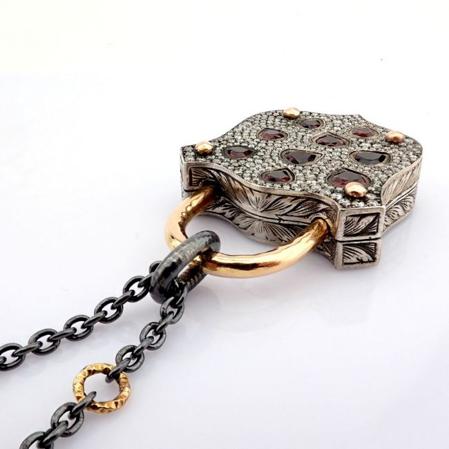 - An exquisite, convertible clasp necklace embellished with gold, colourful stones, and diamonds on silver- Hand Made Necklace- One Of Kind--------------------------------------------------